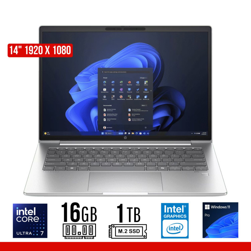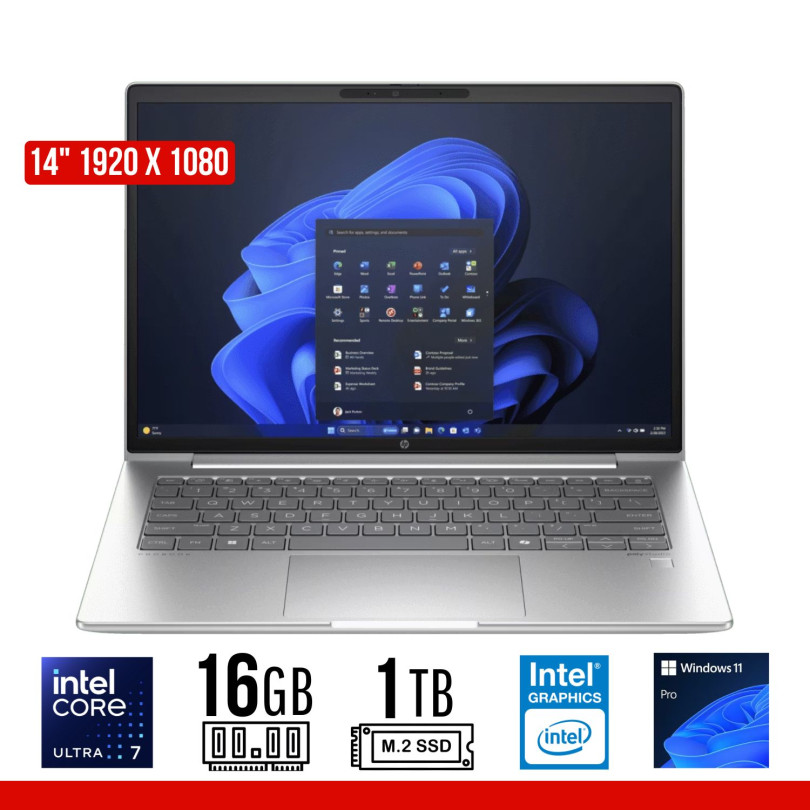 🟥 Procesador: Intel Core Ultra 7 155U, 12 núcleos, hasta 4.8 GHz, caché L3 12 MB