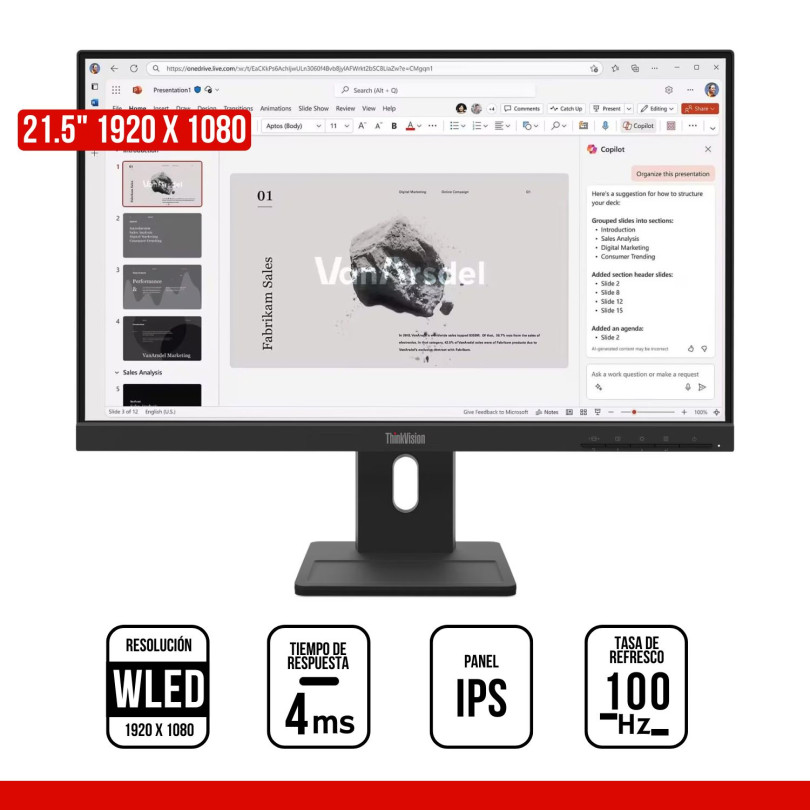 Monitor ideal para oficina y entorno corporativo, con 100Hz para mayor fluidez y diseño ergonómico ajustable para largas jornadas de trabajo.
