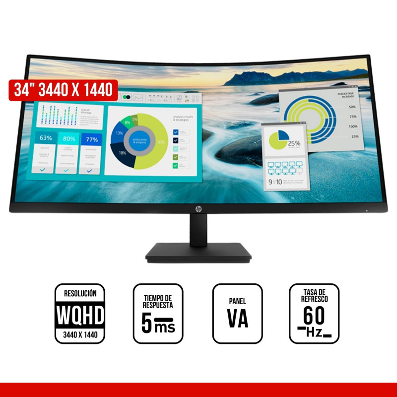 MONITOR CURVO HP P34HC G4, 34" WQHD VA, USB-C/HDMI/DP/USB-A | PN: 21Y56AA S/ 1,784 Vista rápida Añadir al carrito