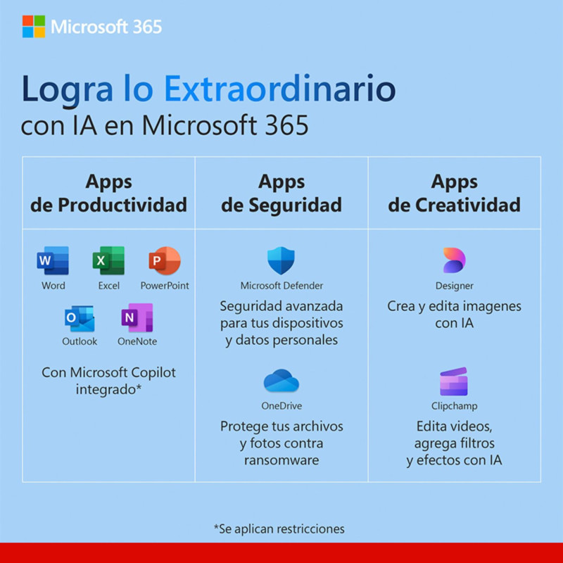 • Usuarios personales que buscan productividad completa, almacenamiento en la nube, seguridad avanzada y herramientas con IA en un solo plan.