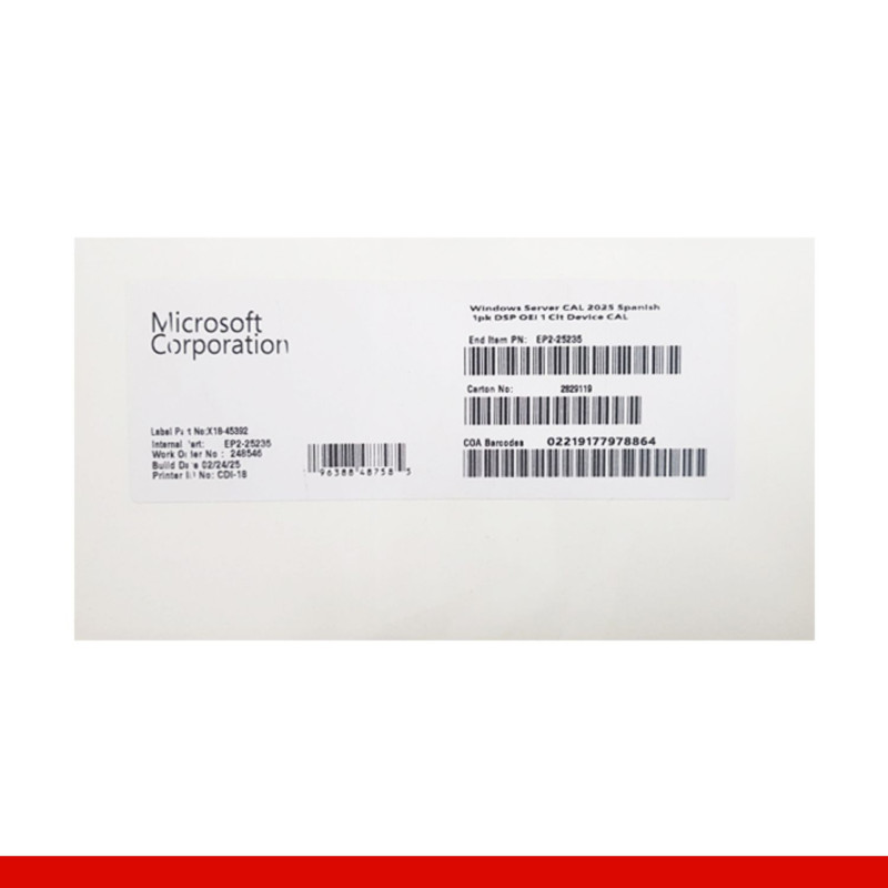 🟥 Producto: Windows Server CAL 2025 – 1PK Device CAL