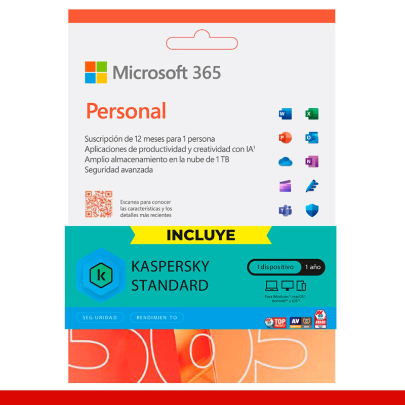 🟥 Formato: Licenciamiento Virtual (ESD) – Kit Microsoft 365 Personal + Kaspersky